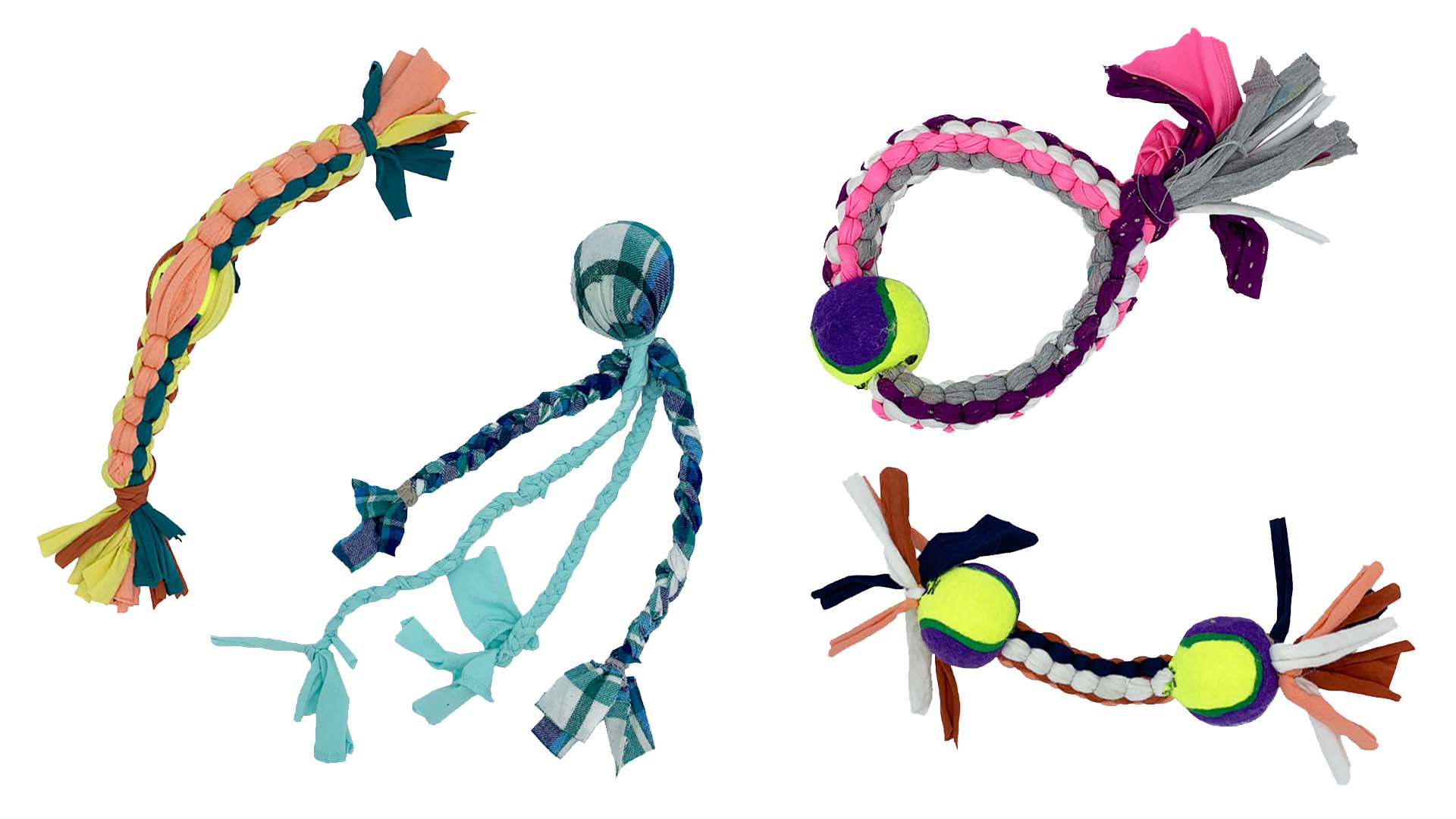 Patch N Play is a set of pet toys made of recycled clothing from Goodwill of the Finger Lakes and donated tennis ball
